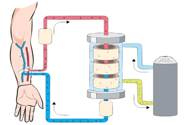 Giống như thận, bộ lọc loại bỏ các chất thải ra khỏi máu. Máu được lọc sau đó sẽ trở lại bệnh nhân thông qua một ống thông khác. Hệ thống hoạt động như một quả thận nhân tạo.